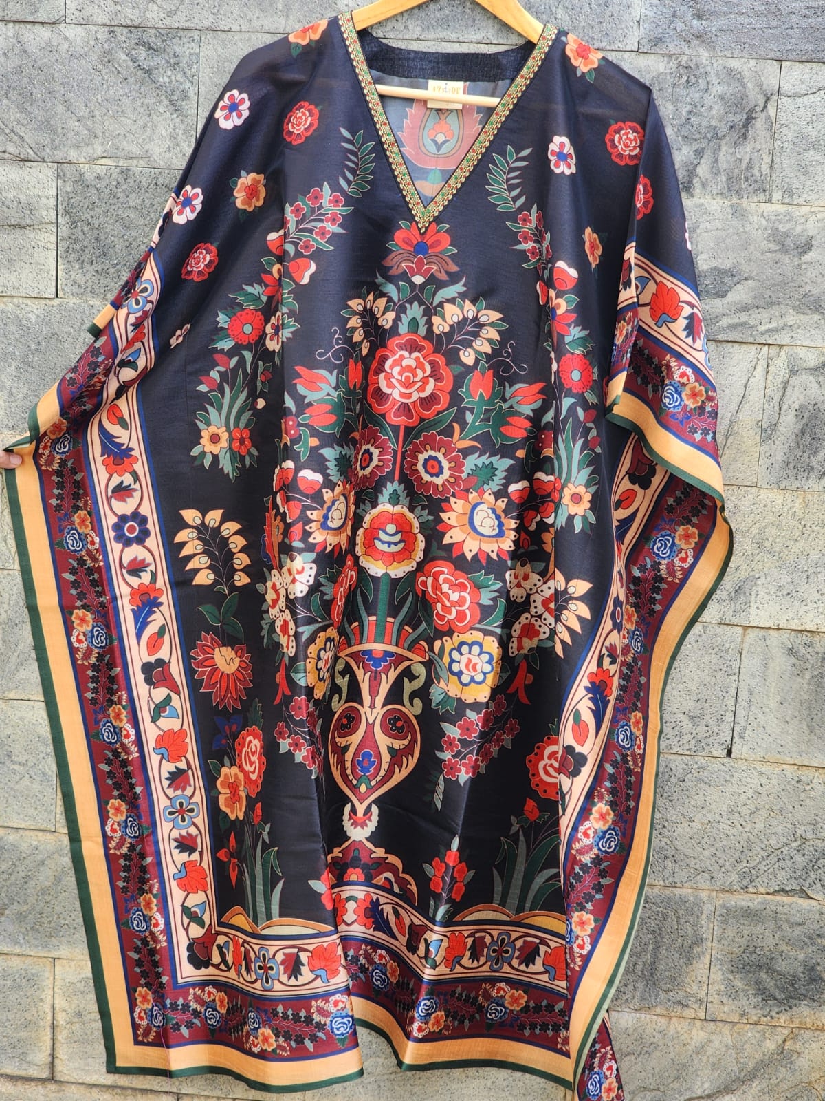 Embrace your unique style with our quirky prints that add a playful twist to your ensemble. Perfect for vacation wear or resort lounging, this kaftan offers versatility and comfort, allowing you to effortlessly transition from day to night.