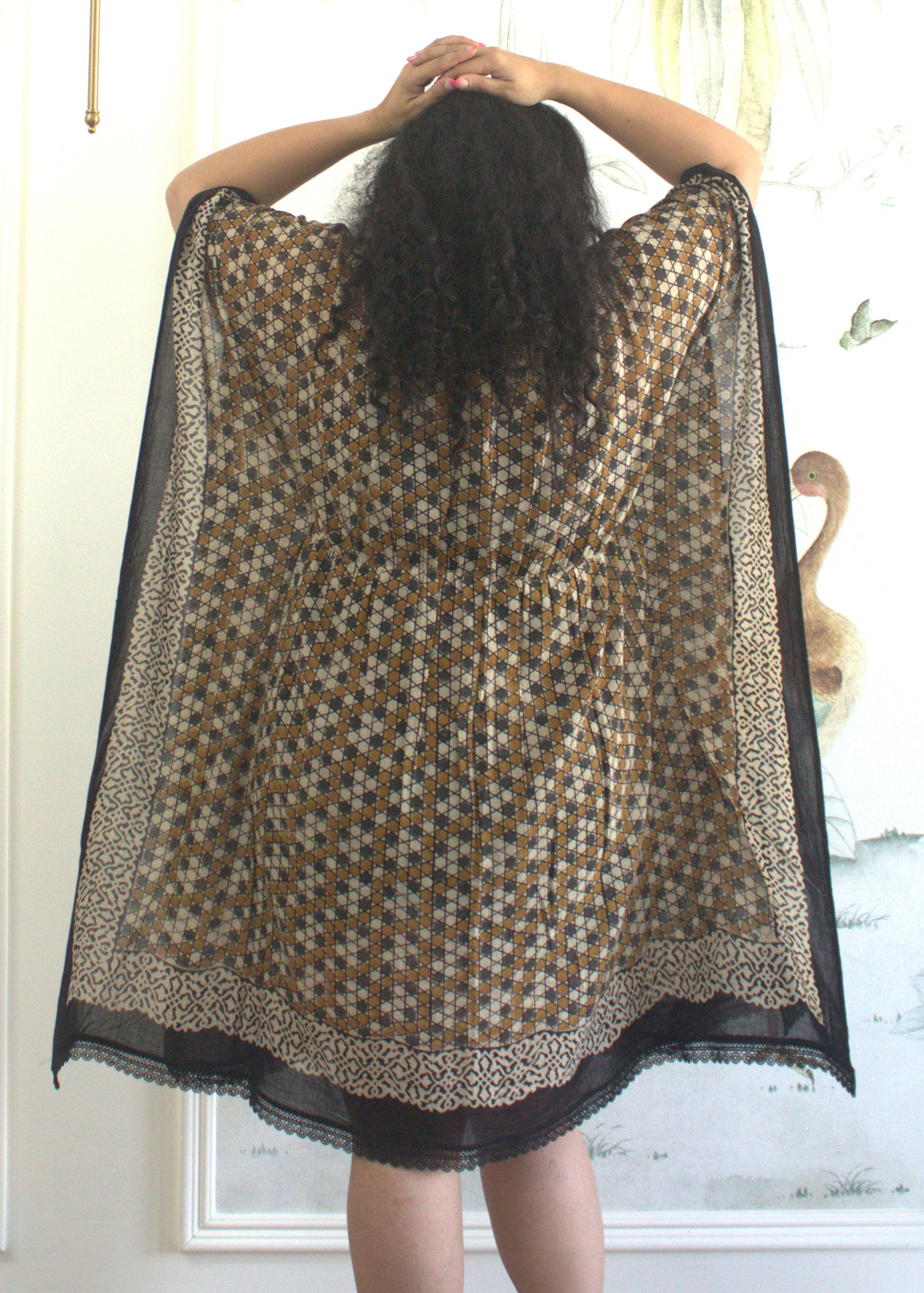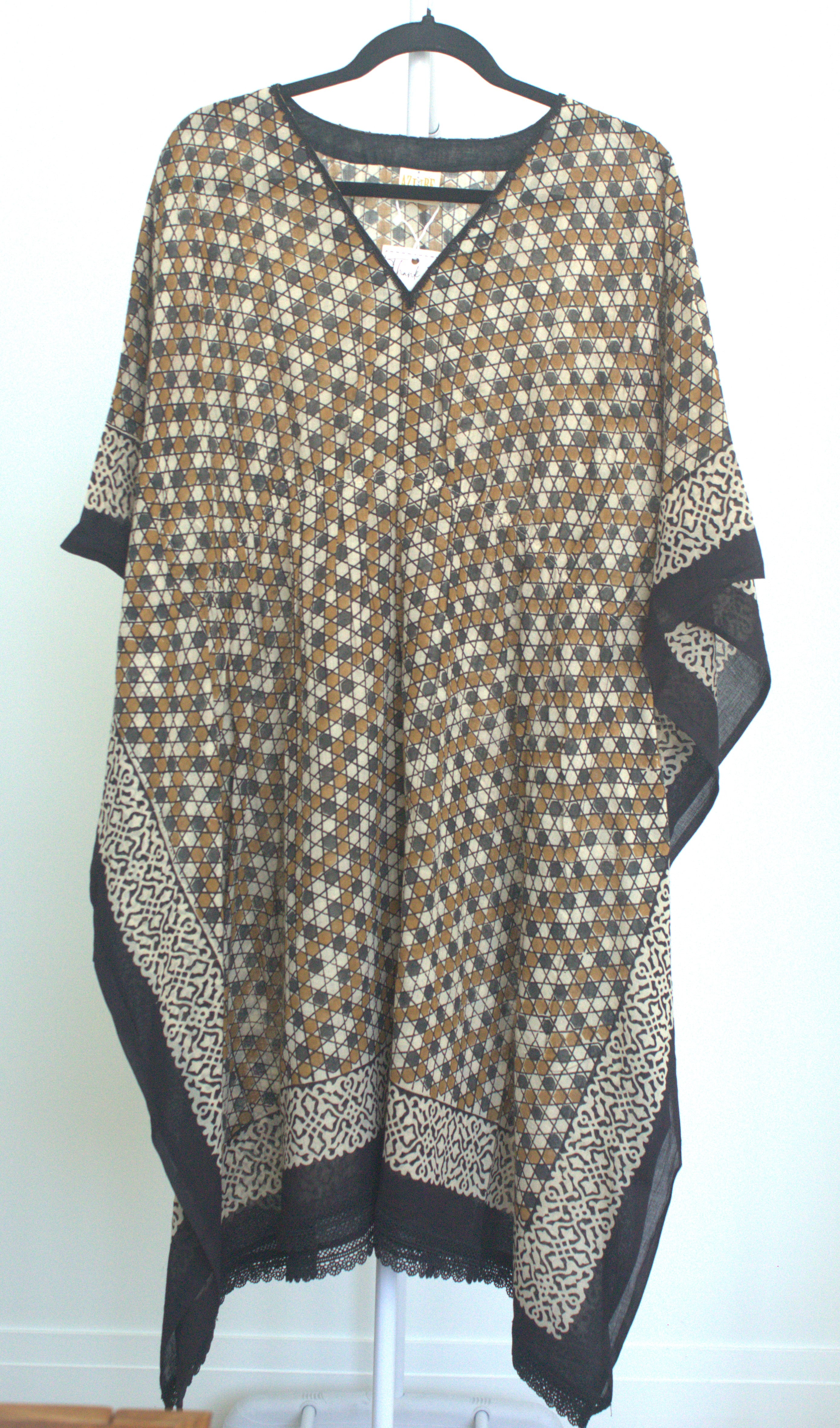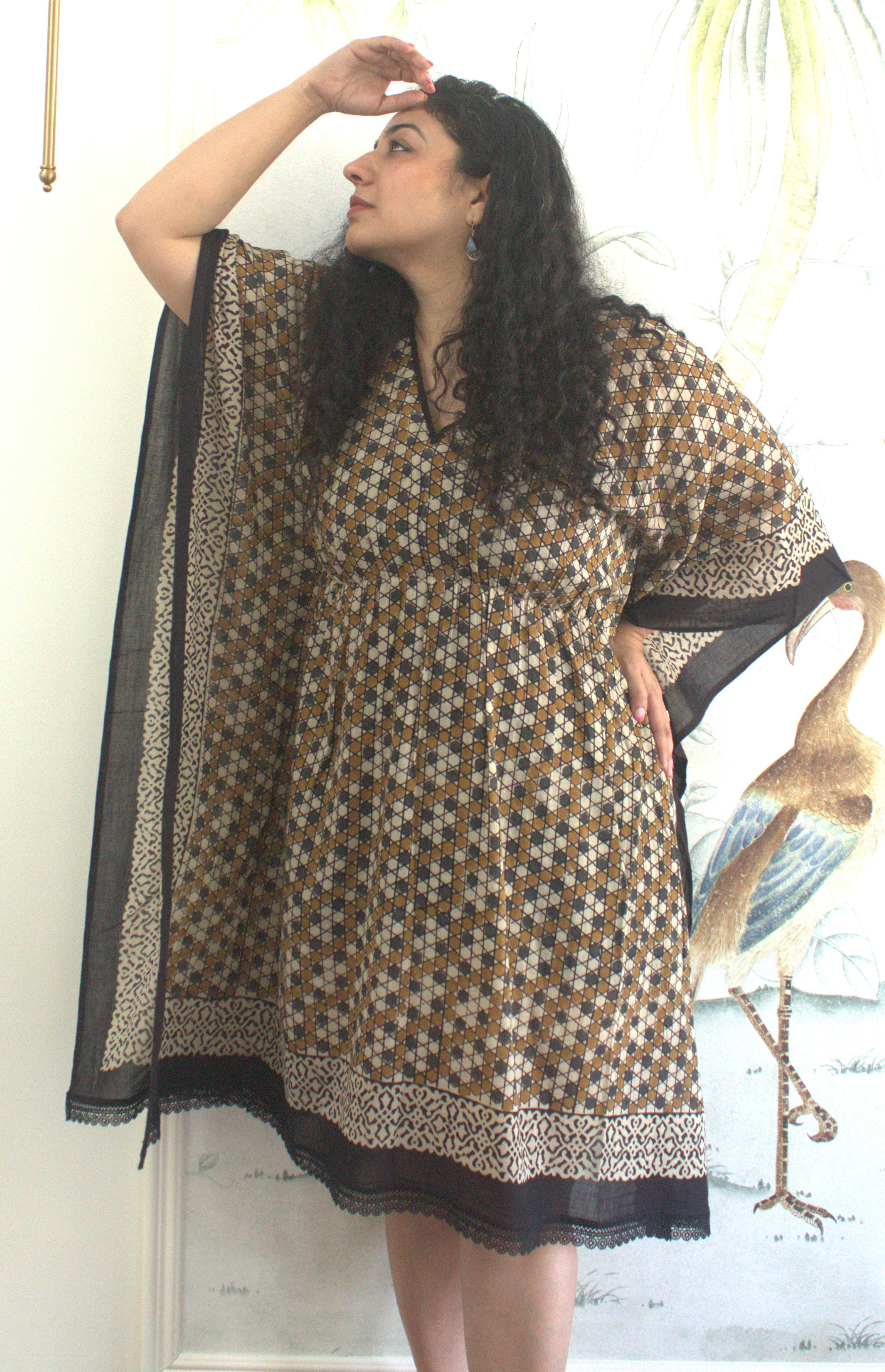 Step into effortless elegance with our Ochre geometric Short Cotton Kaftan dress, the perfect beach cover-up and summer essential. Crafted from luxurious organic cotton, this one-size-fits-all kaftan offers unparalleled comfort and style. Whether you're lounging by the pool or strolling along the shore, its earthy print adds a touch of bohemian charm to your look. Embrace laid-back luxury with this versatile piece, designed to elevate your summer wardrobe with ease.