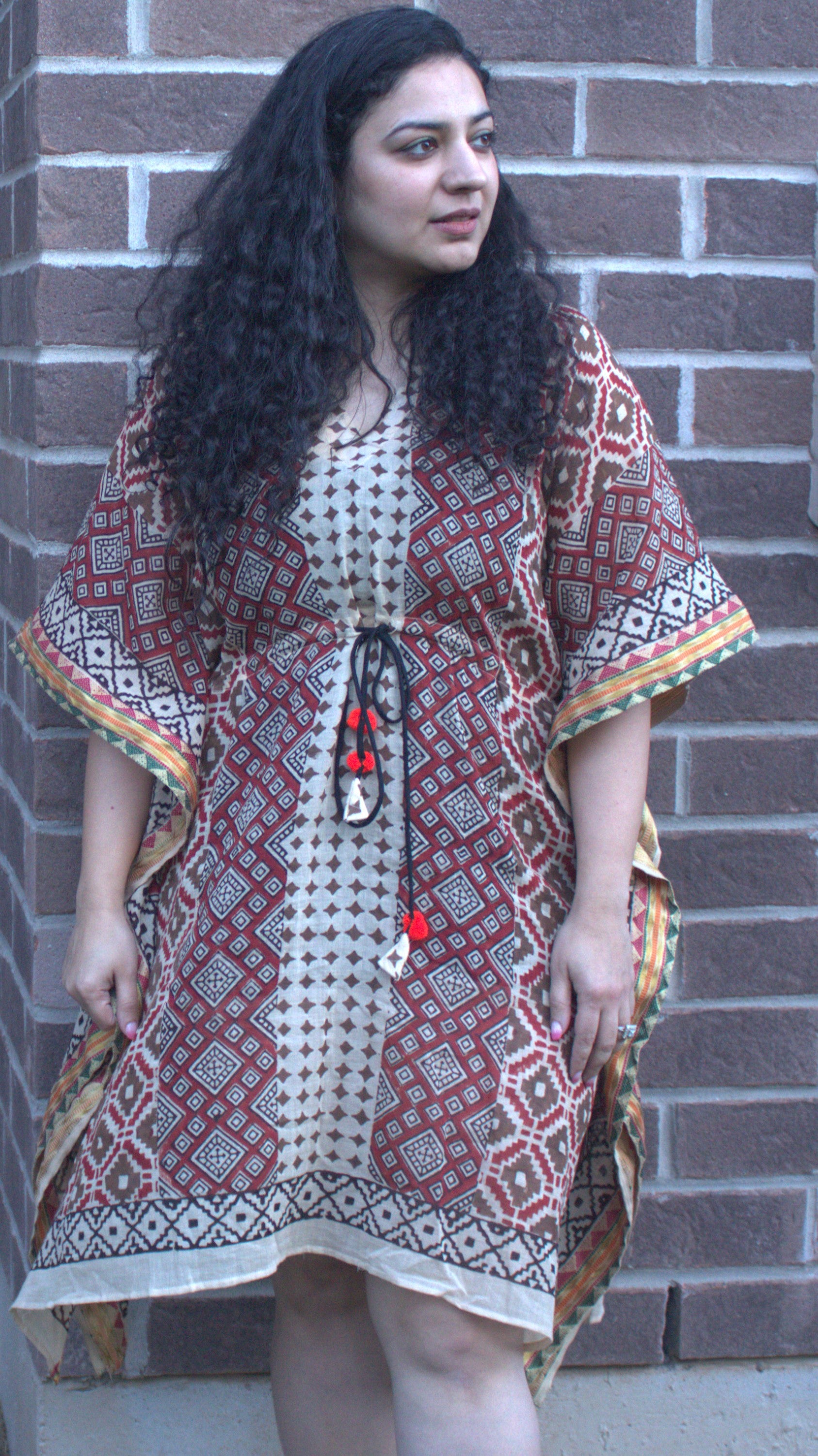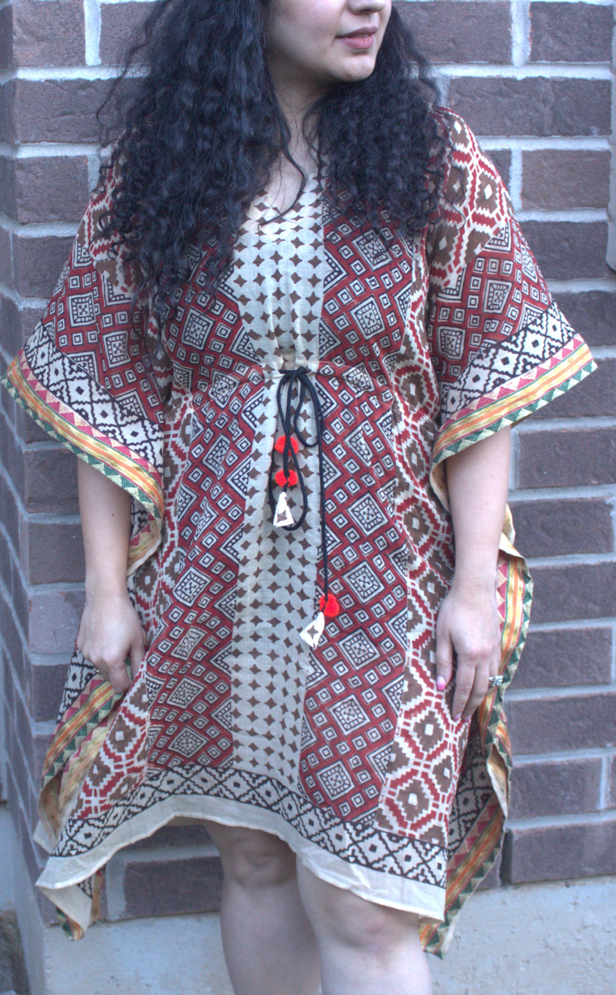 Dive into a world of effortless elegance with our collection of short geometric kaftans crafted from premium organic cotton. Embrace the freedom of one-size-fits-all comfort, designed to grace every silhouette with ease. Whether you're strolling along the shore or lounging by the poolside, our versatile pieces effortlessly transition from beachwear to chic summer attire. Adorned with vibrant prints, each dress doubles as a beach cover-up, adding a touch of whimsy to your seaside adventures. Explore our curated selection and discover the epitome of laid-back luxury for the sun-drenched days ahead.